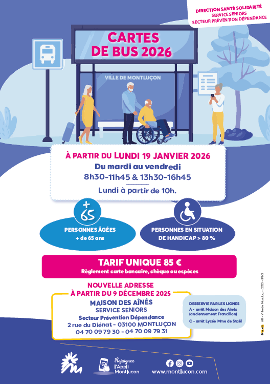 Les communes de Montluçon, Désertines, Domérat et Prémilhat proposent un tarif préférentiel pour les abonnements annuels aux personnes ayant plus de 65 ans (ou 70 ans) et aux personnes en situation de handicap, sous conditions.